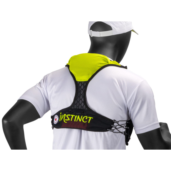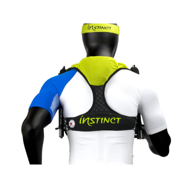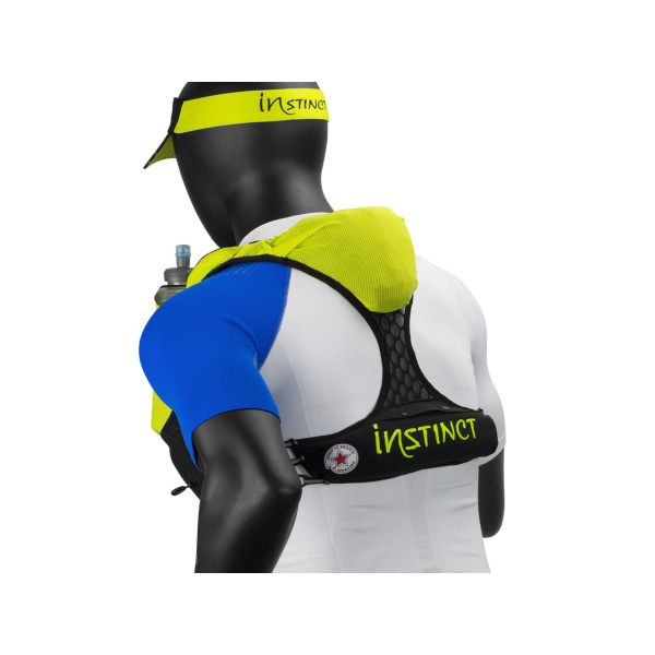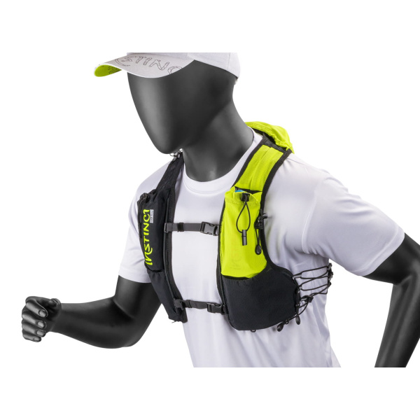 - 2x 500ml hydration pockets + elastic compression cords with auto lock. Sits high for immediate and effortless access.